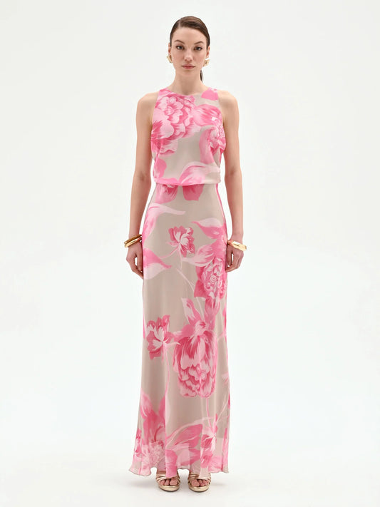 Abito Corto Rosa Cipria Con Gonna in Tulle