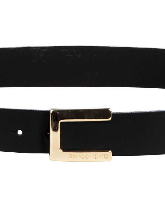 Cintura Sottile in Pelle con Fibbia Quadrata e Logo