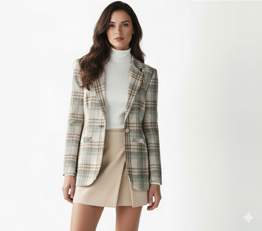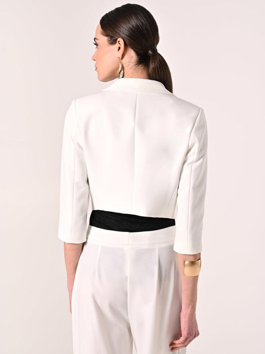 Giacca Blazer Sfiancata in Tessuto Tecnico con Perle su Revers