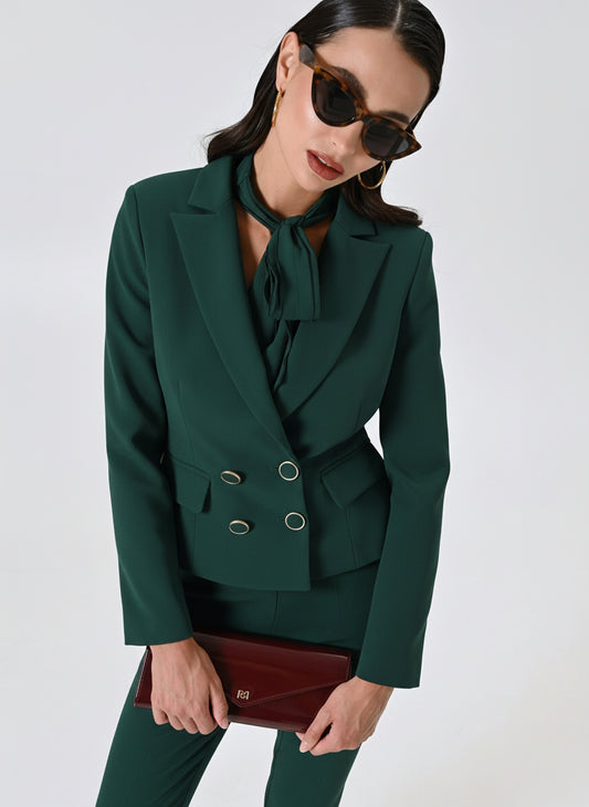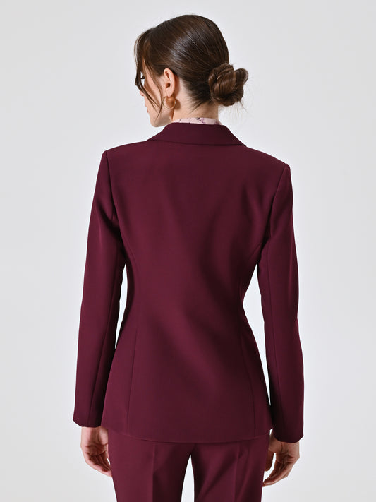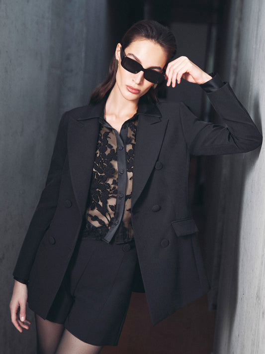 Giacca Blazer Sfiancata in Tessuto Tecnico con Perle su Revers