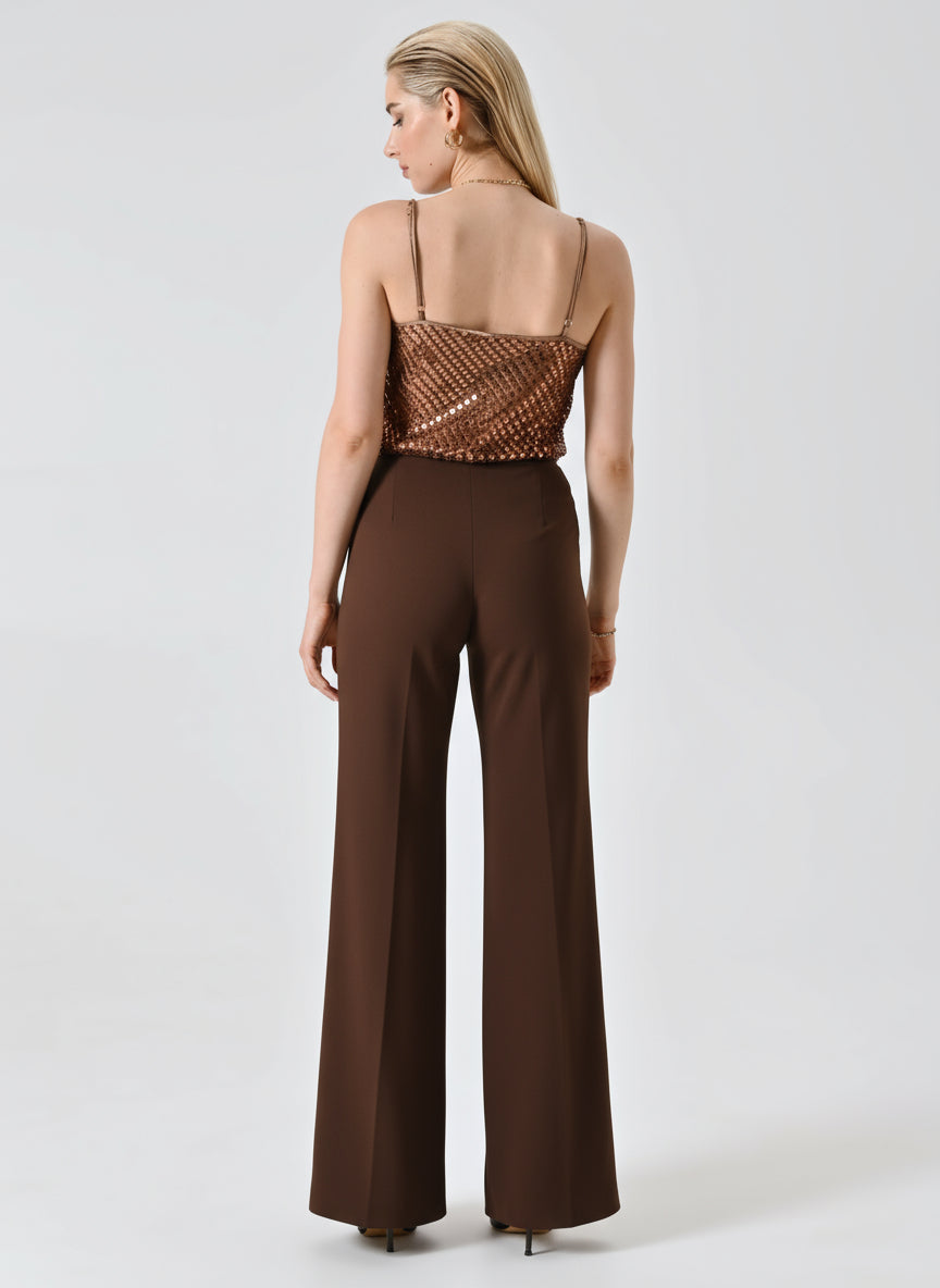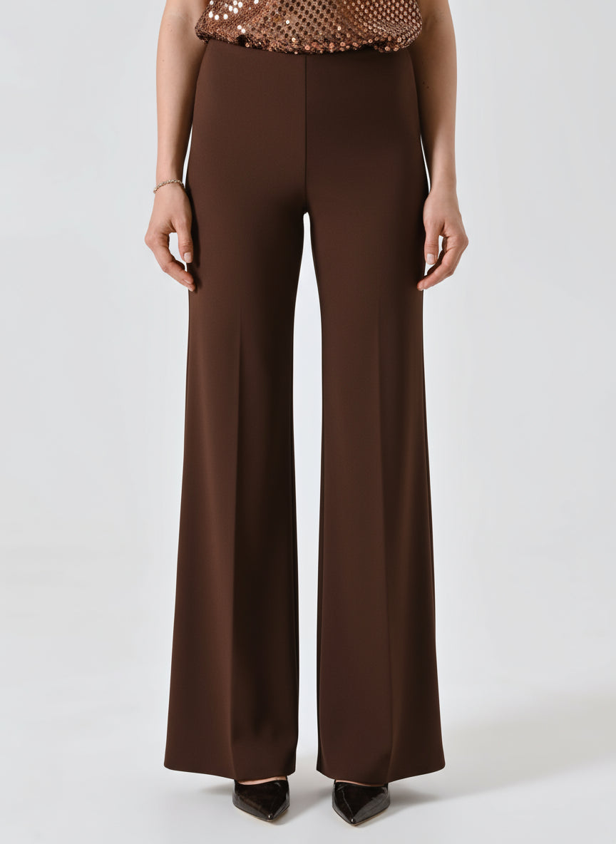 I Pantaloni palazzo in Scuba mano Crepe sono un capo dal design essenziale e contemporaneo, ideale per chi desidera uno stile sofisticato in ogni occasione speciale.