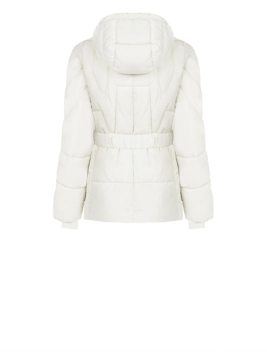 Piumino Corto Sfiancato con Cintura Elastica Coordinata e Cappuccio Rimovibile