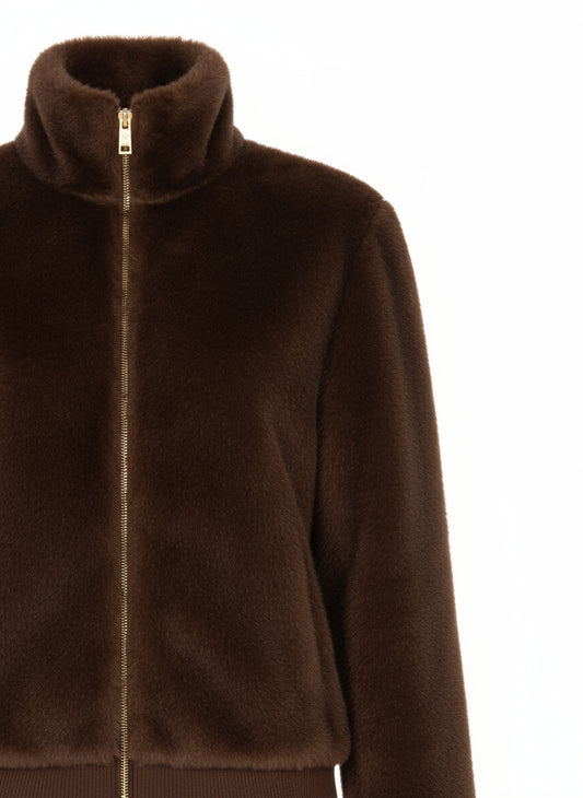 Giacca in Ecopelliccia con Cintura e Bottone Gioiello