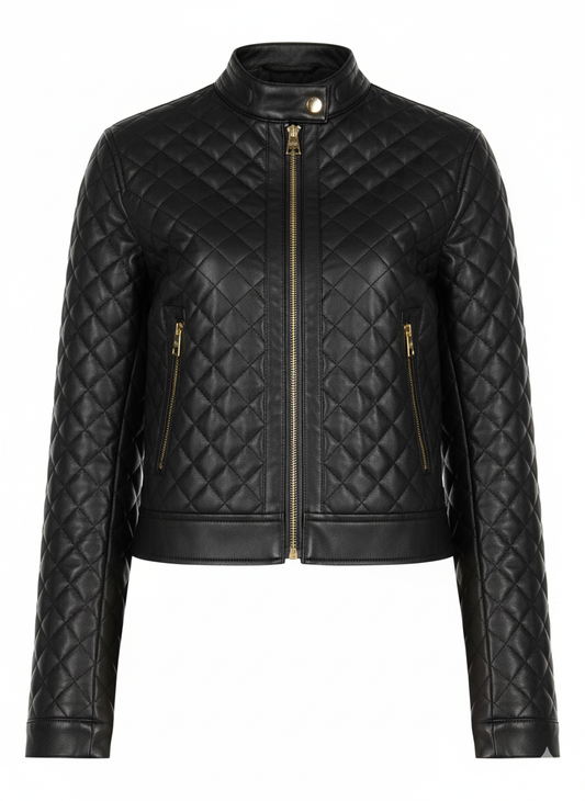 Giubbotto Corto Sfiancato e Trapuntato in Similpelle