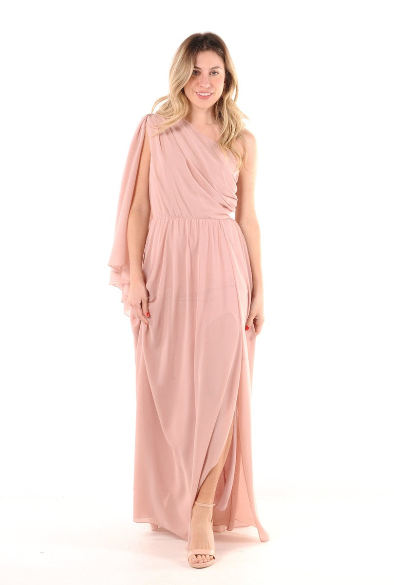 Abito Impero Monospalla Lokita lungo. Il capo è Interamente Made In Italy.
