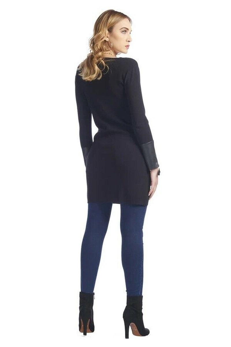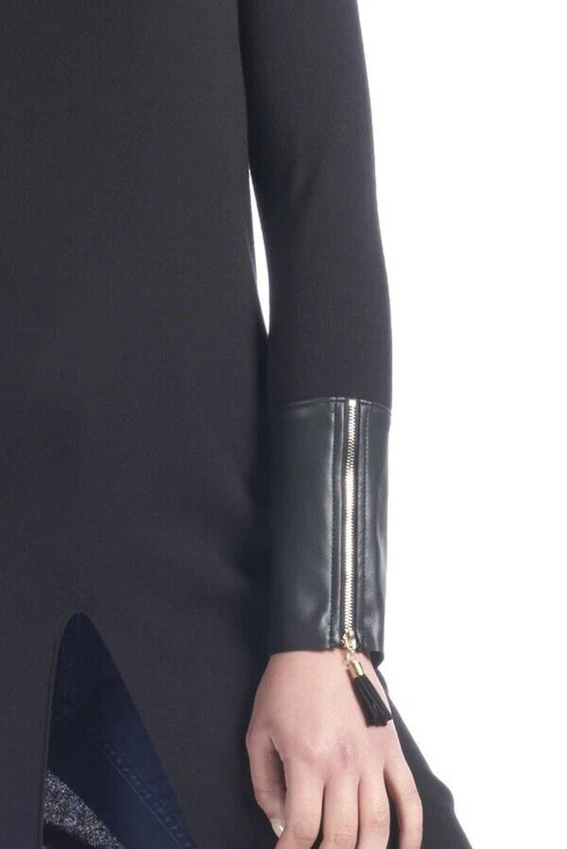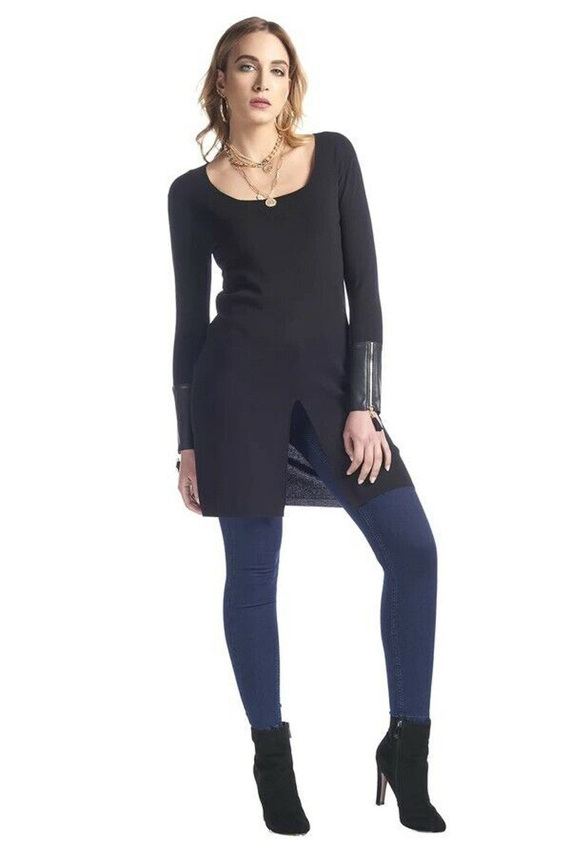 Maglia Relish Con scollo Quadrato e polsini in ecopelle con zip Oro. Perfetta per leggings e Jeans. La modella è alta 1,72 ed indossa una taglia S.