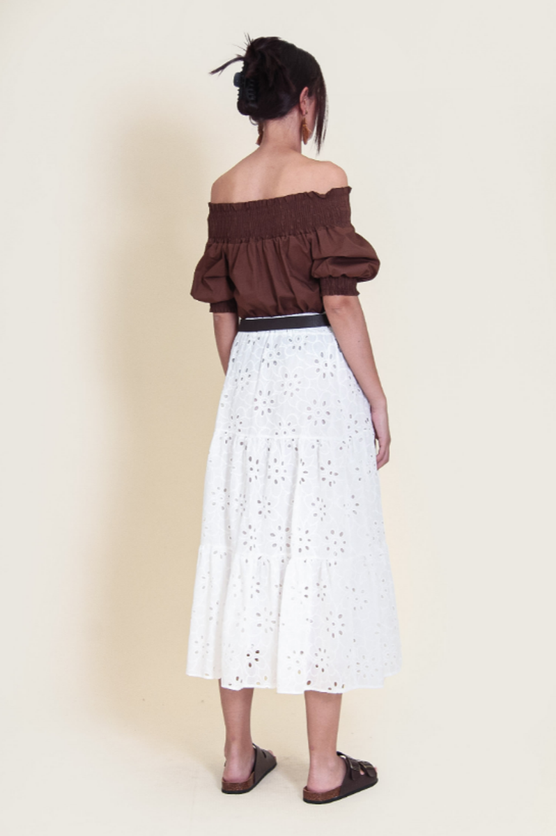 Top modello scollo a barca LeStreghe. Realizzato in 100% Cotone di alta qualità, questo top offre un look fresco e comodo. Il design unico sottolinea le silhouette femminili per un look audace. Il capo è Interamente Made In Italy.