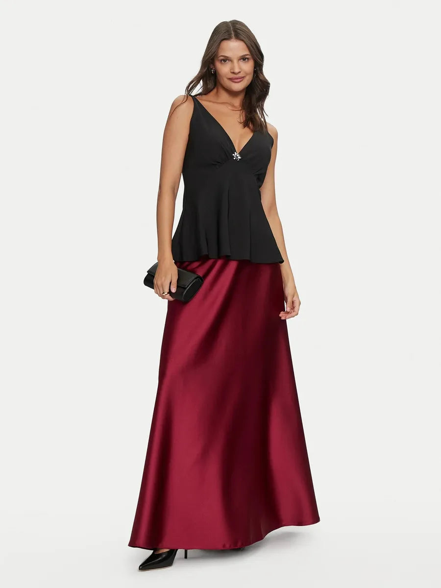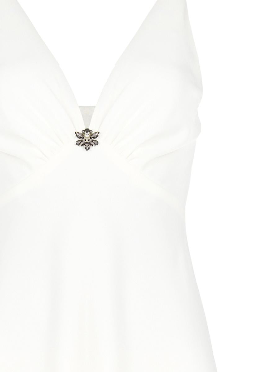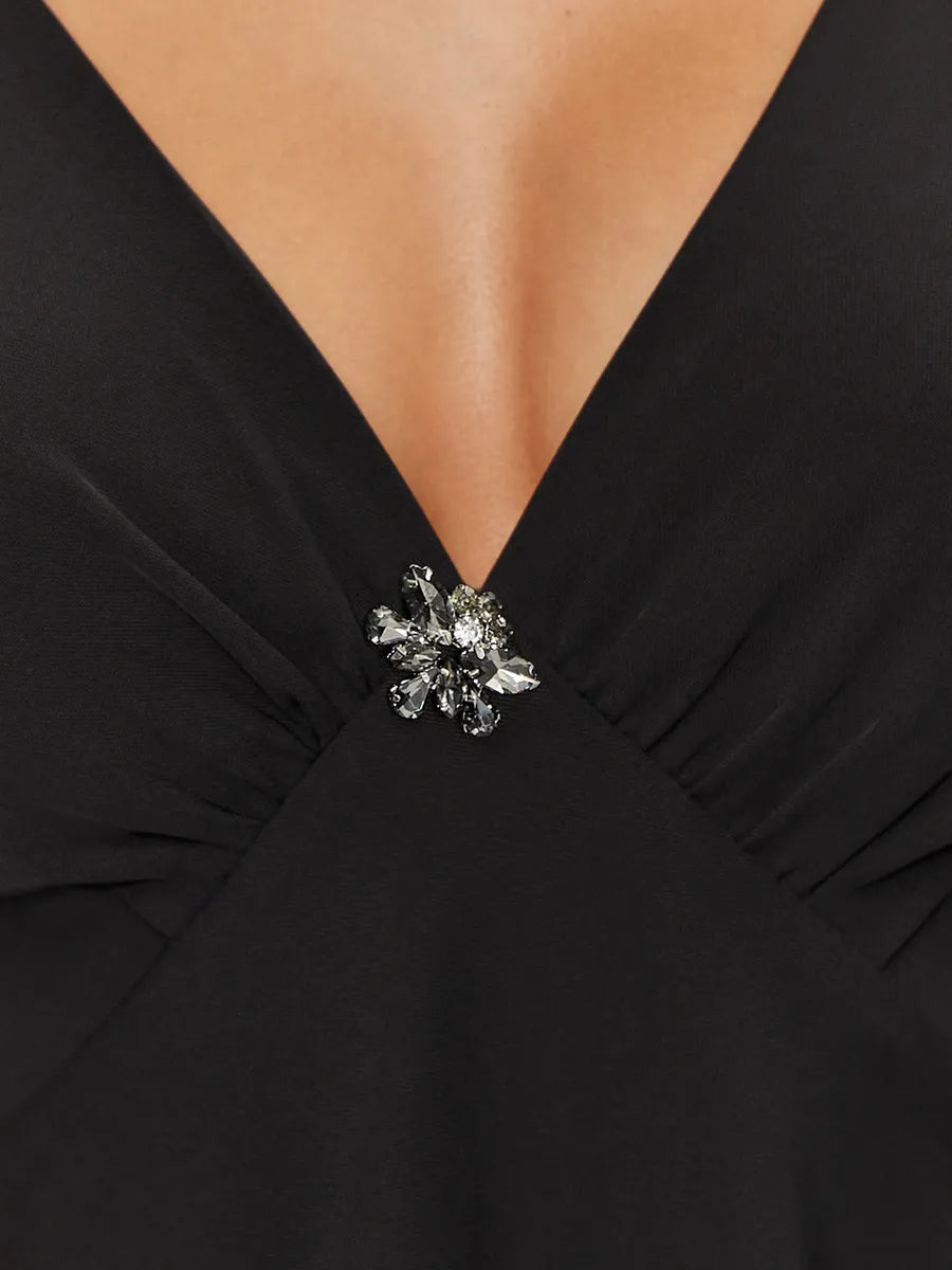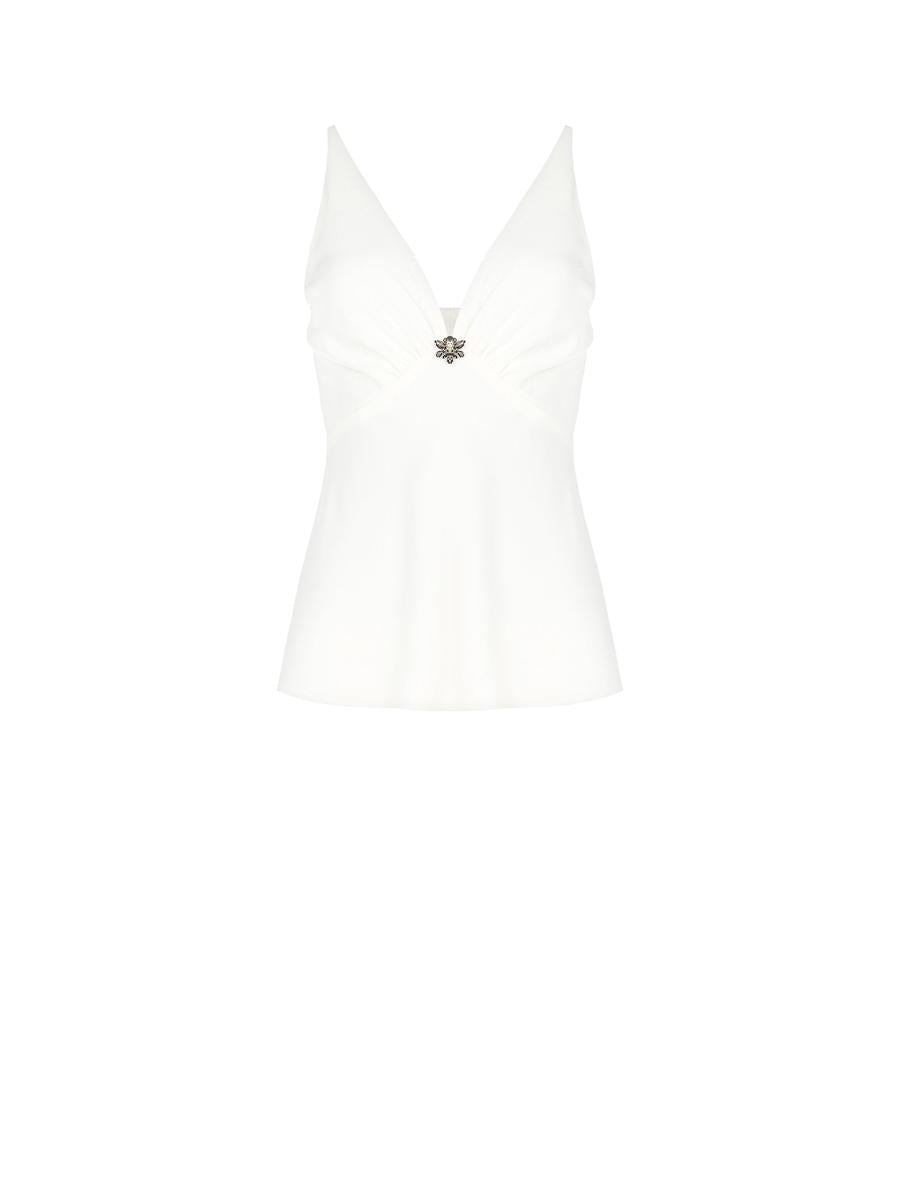 Top Sfiancato in Raso Scollato con Coppe e Spilla Gioiello