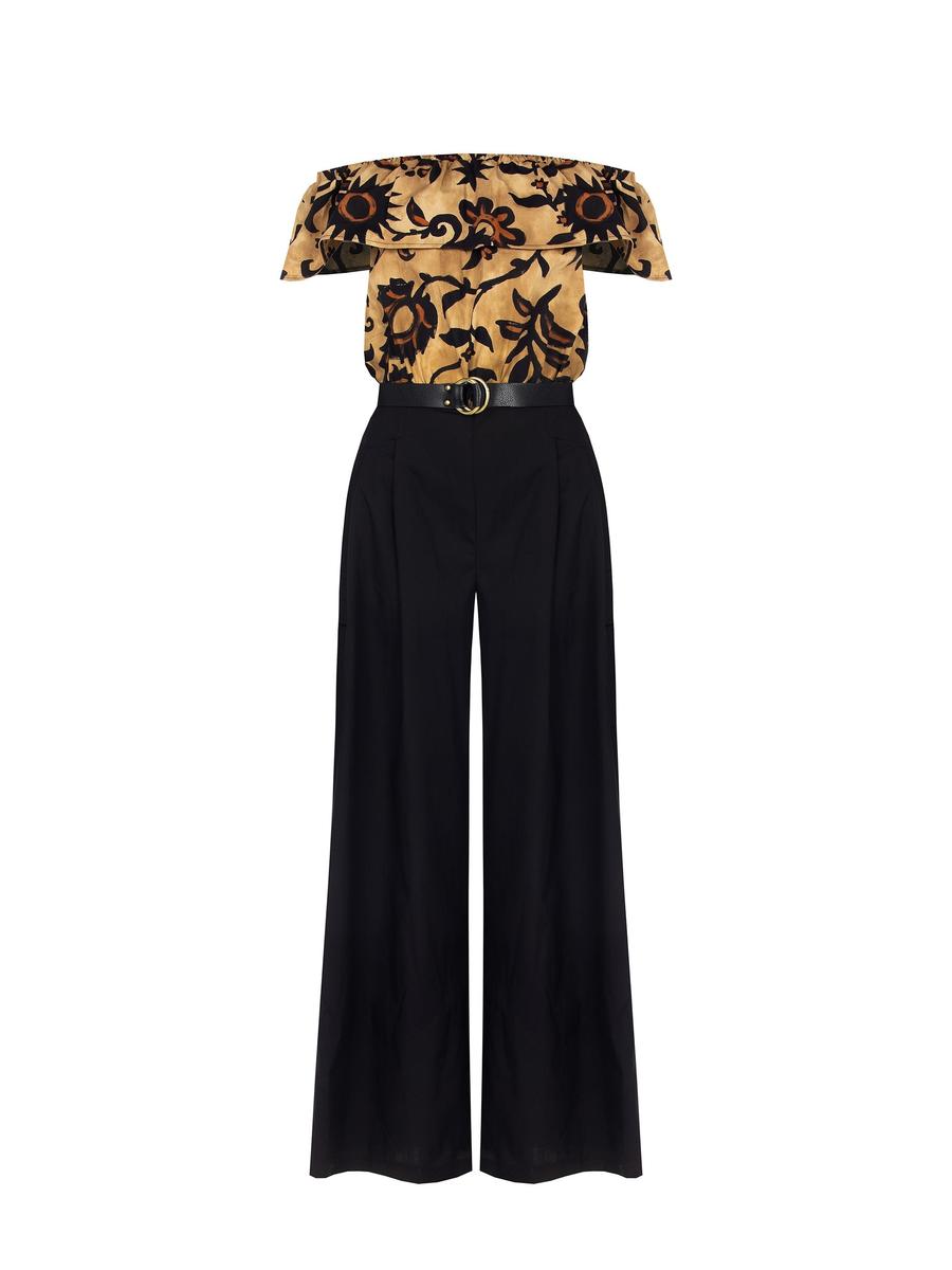 Tuta Rinascimento scollo barca con pantaloni palazzo. Il capo è interamente made in italy