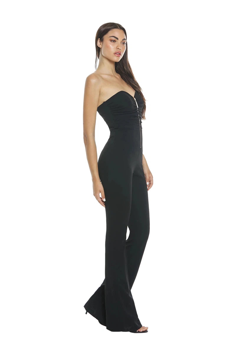 Una sensuale zip a vista corre lungo il busto della tuta mettendo in risalto tutta la tua originalità. Il capo è Interamente Made In Italy.