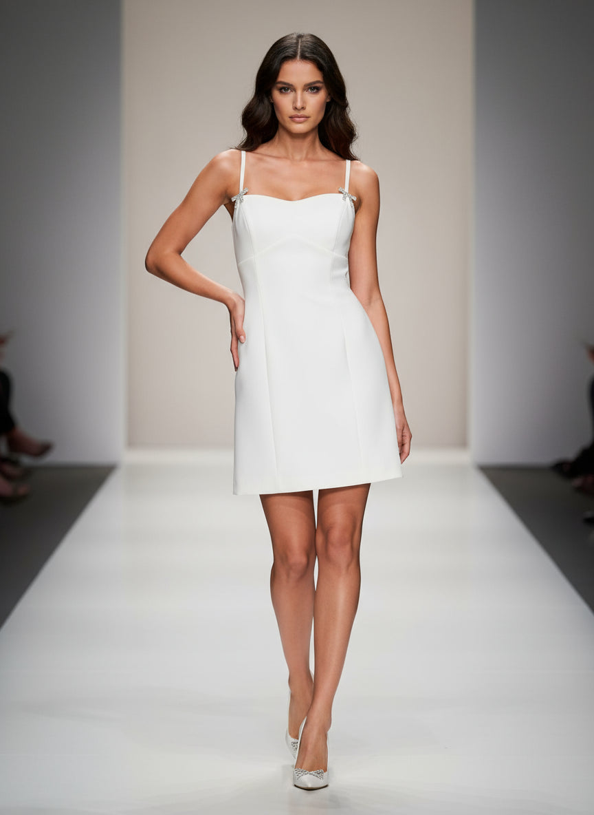 Un capo unico ed elegante, l'Abito Corto Svasato in Tessuto Tecnico con Spille Fiocco in Strass è perfetto per chi ama distinguersi. Realizzato in tessuto tecnico, con spille fiocco in raffinati strass, questo abito è ideale per un look sofisticato e di classe.