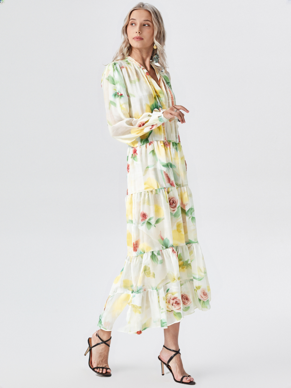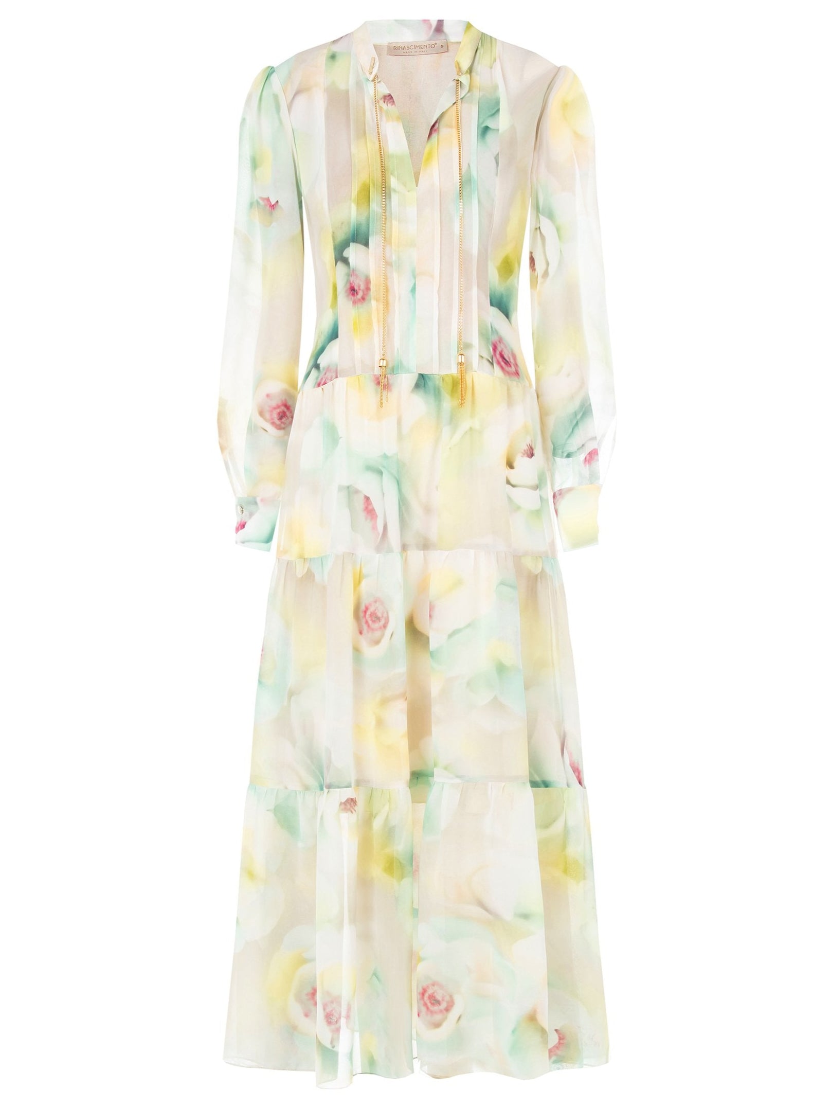 Abito Lungo Rinascimento a balze. Il capo è interamente made in italy