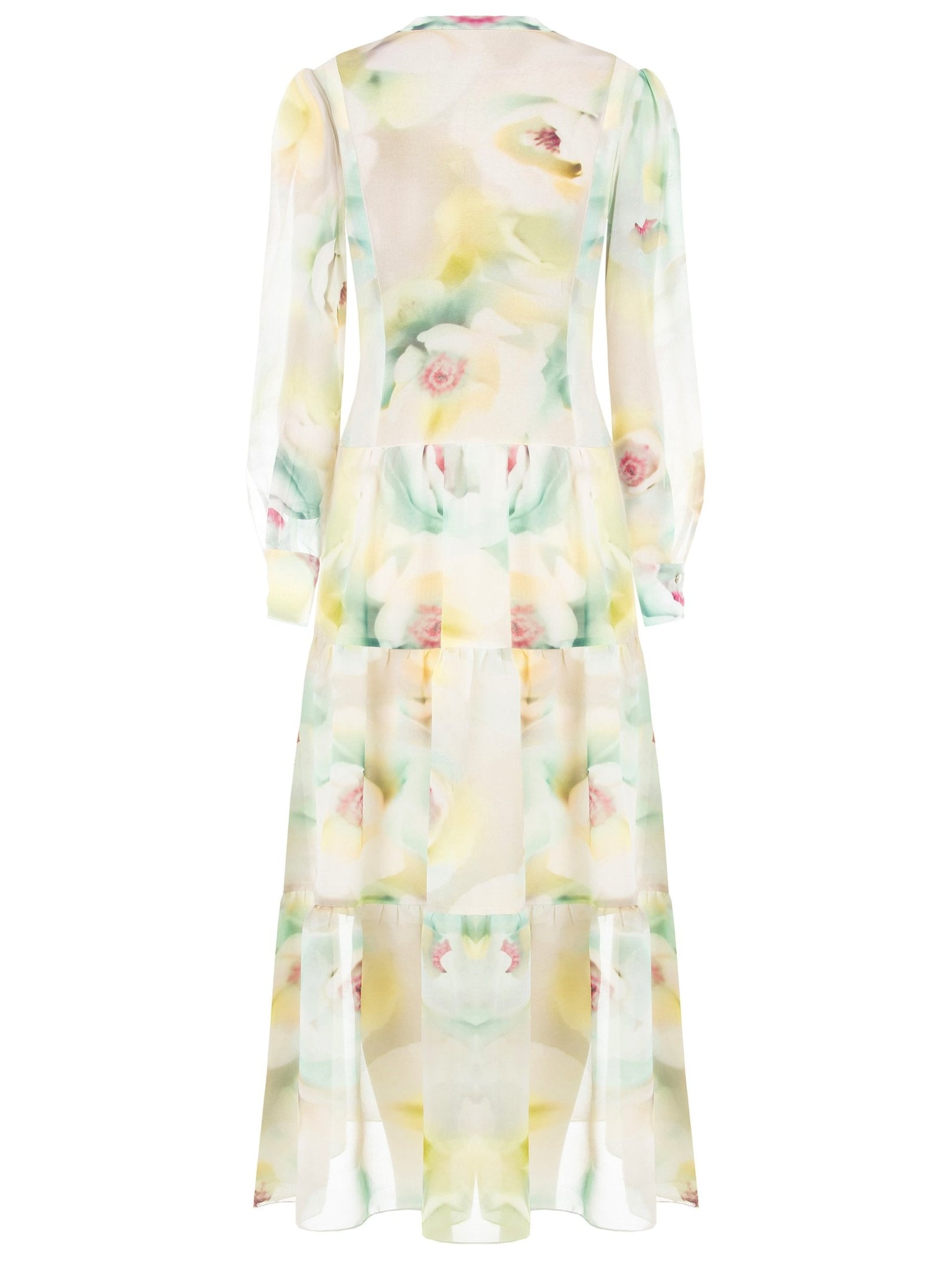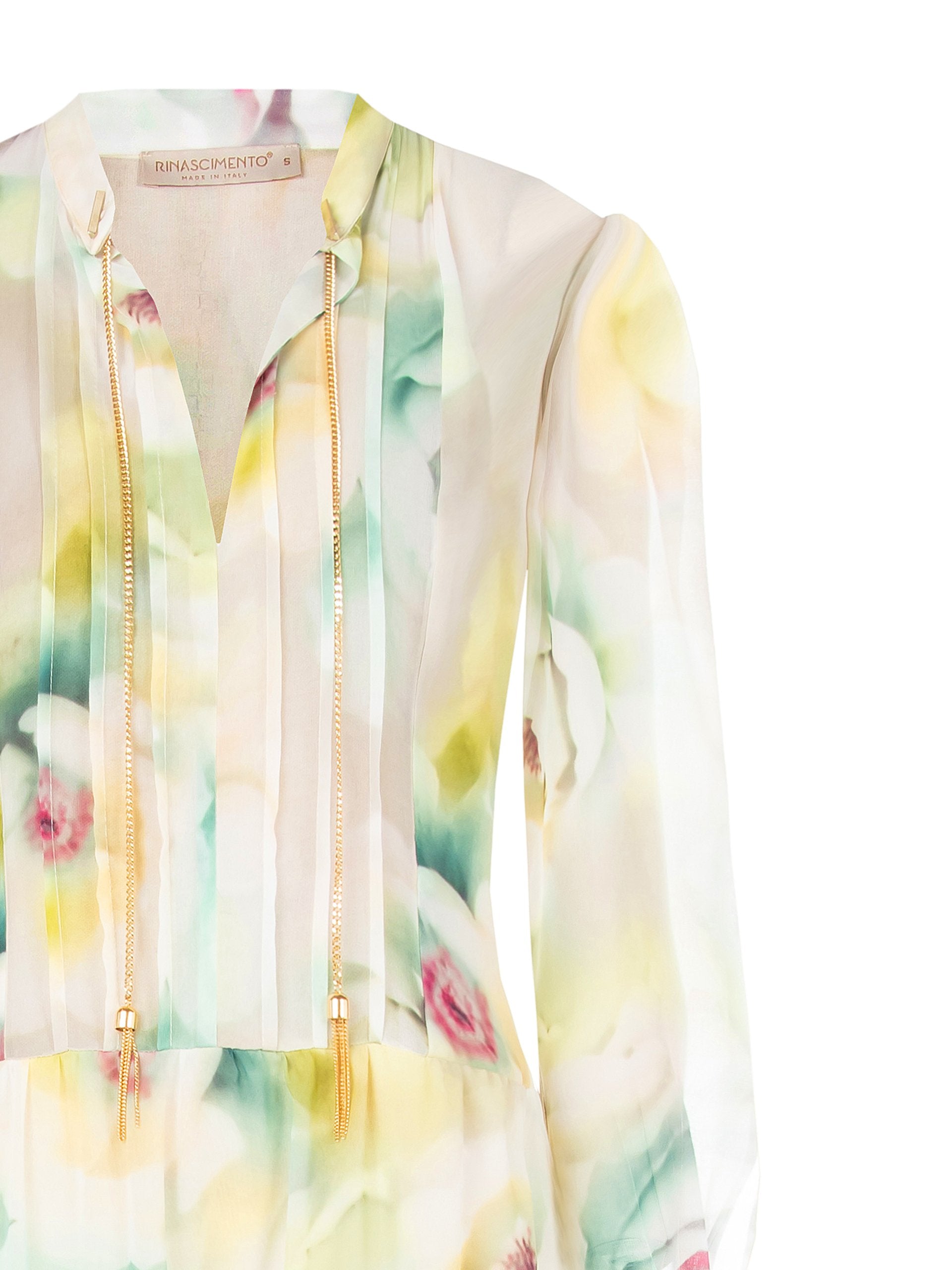 Abito Lungo a Balze in Georgette con Scollo a V e Catene nel Colletto