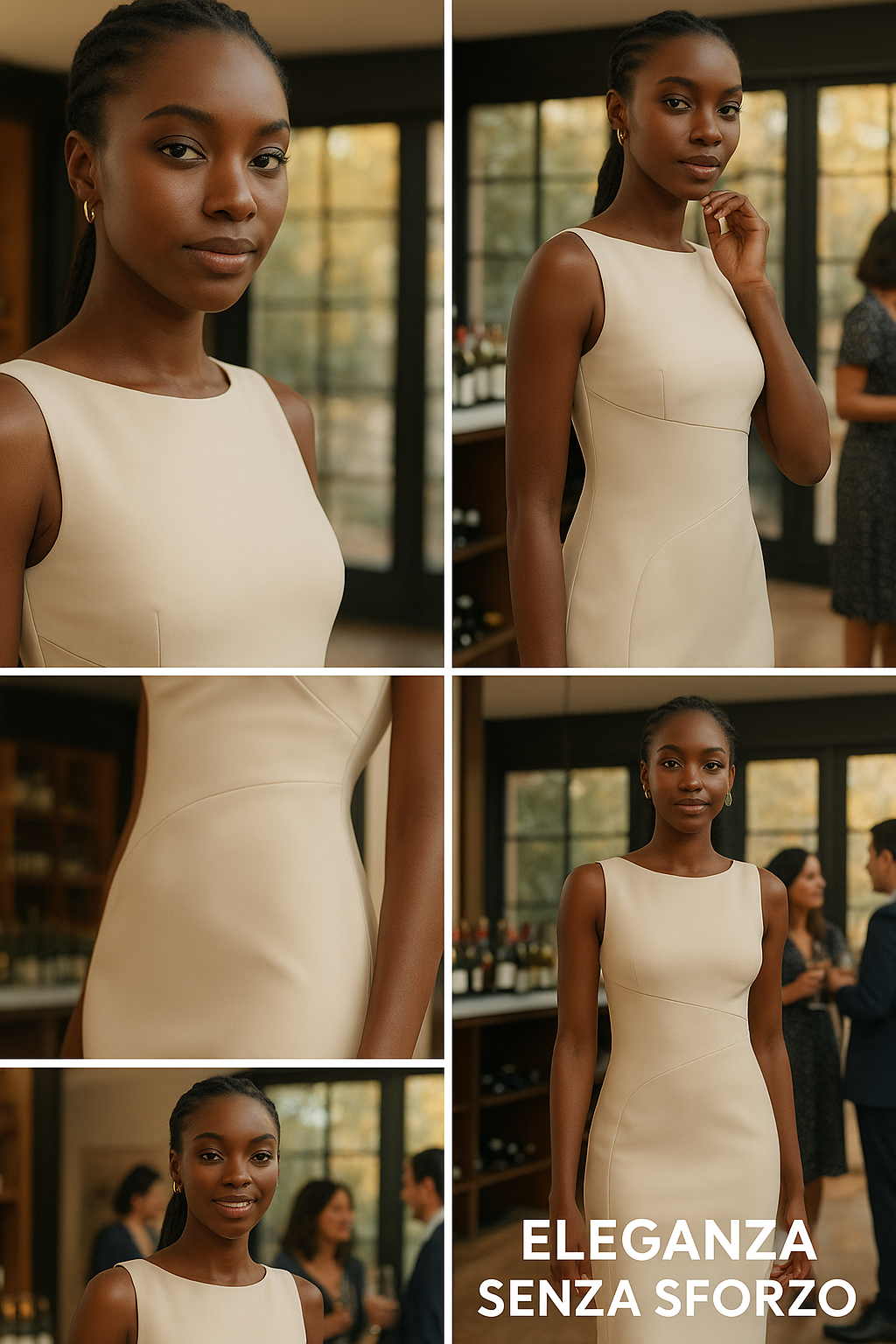 L'abito tubino girocollo è un capo essenziale e versatile, caratterizzato da una linea sagomata che valorizza la silhouette. Il design minimalista con scollo girocollo garantisce eleganza sobria, ideale per occasioni formali e professionali. Realizzato con materiali di qualità, assicura comfort e vestibilità perfetta, combinando stile e funzionalità in un unico capo.