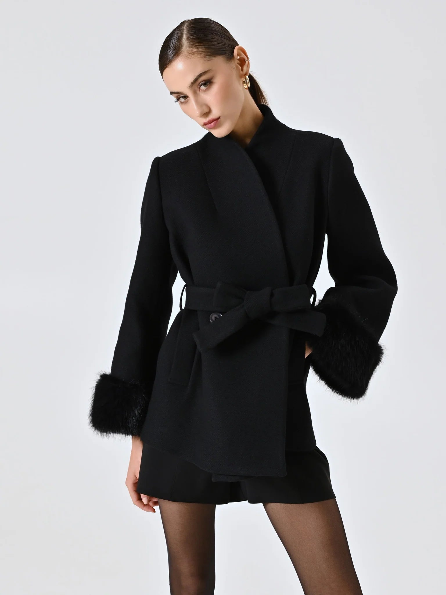 Cappotto Corto con Inserti Effetto Pelliccia - Eleganza Invernale Made in Italy