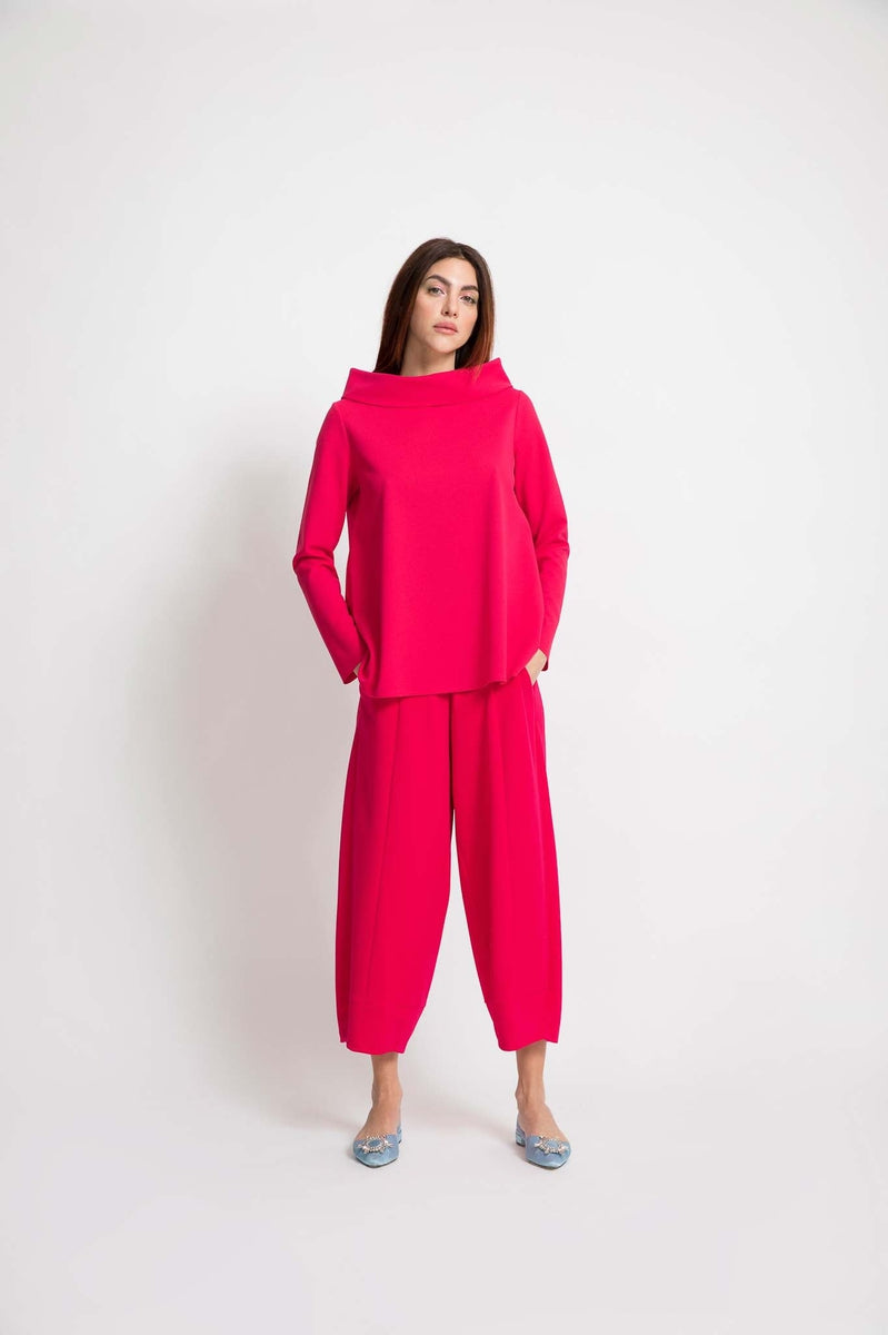 Tuta due pezzi Pepe Rosa con felpa Scollo Anello e pantalone Palazzo. Il capo è interamente Made In Italy.