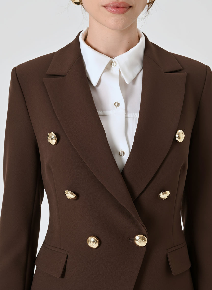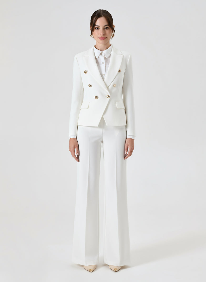La Giacca Doppiopetto in Tessuto Tecnico è un capo dal design deciso, pensato per completare con stile i look più formali della stagione. Realizzata in tessuto tecnico, presenta costruzione doppiopetto con abbottonatura a vista, ulteriore bottone interno piatto, tasche con patta, fodera interna, bottoni bold dorati, spalline imbottite e revers a lancia. Indossa la Giacca Doppiopetto in Tessuto Tecnico per l’ufficio, una laurea o altre occasioni in cui desideri uno stile raffinato e professionale. Il capo è Made in Italy. La modella è alta 1,74 m e indossa la taglia S.