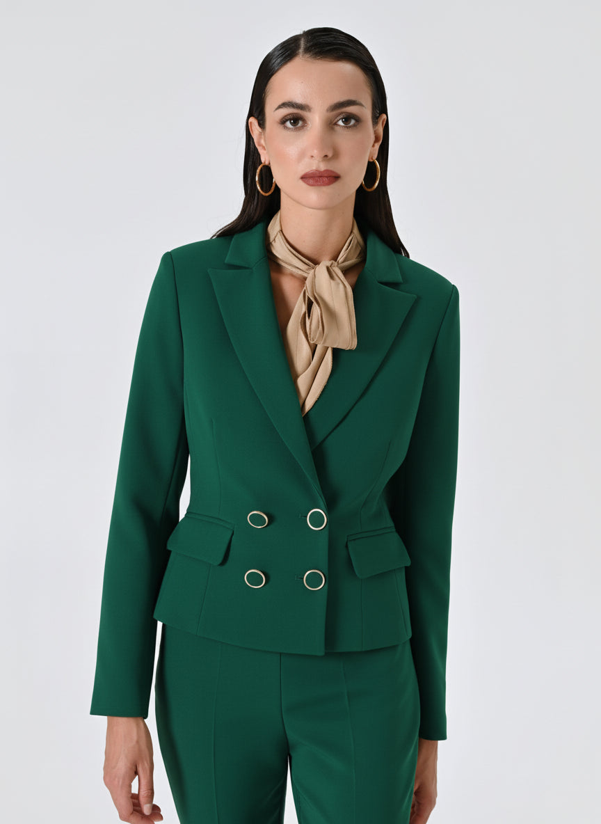 La Giacca Doppiopetto in Tessuto Tecnico è un capo icona di stile che unisce eleganza formale e femminilità decisa, ideale per completare con carattere i look più curati.