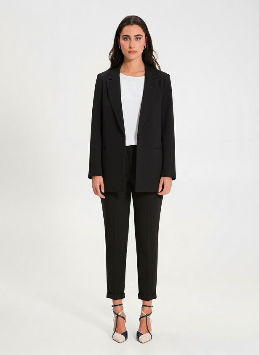 Abbinabile ai pantaloni coordinati per completo formale o su jeans per look informale.