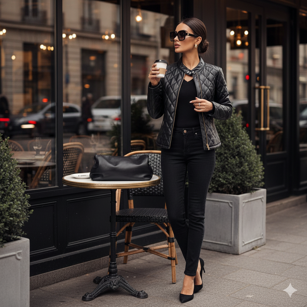 Giubbotto Corto Sfiancato e Trapuntato in Similpelle