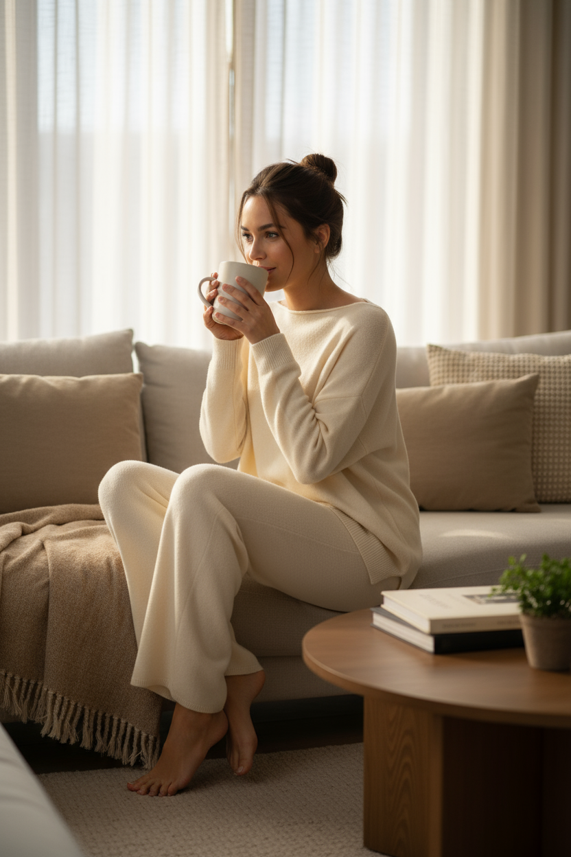 Pantalone in maglia con elastico in vita, pratico e comodo.