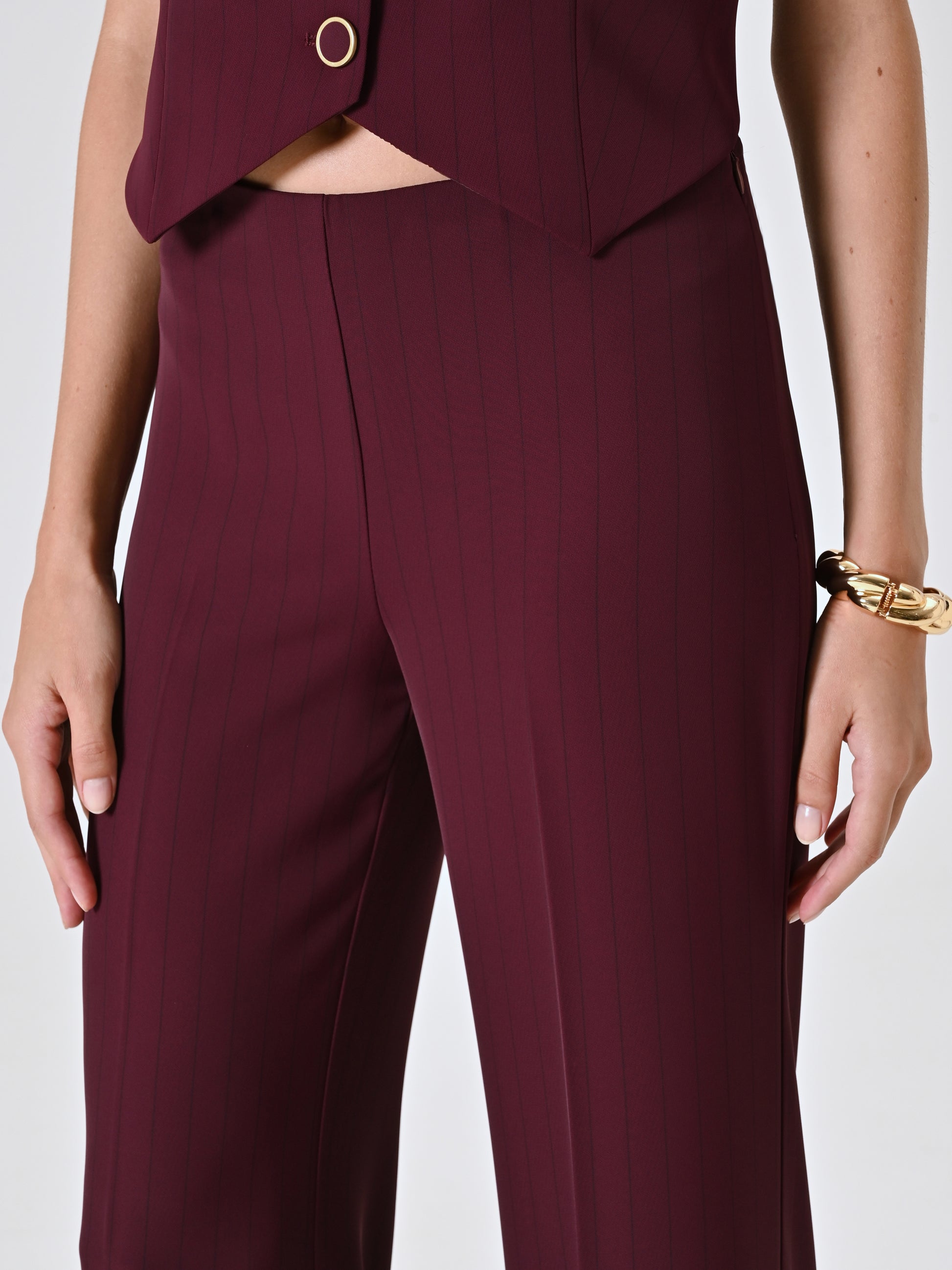 I Pantaloni Bordeaux con Riga Nera sono un capo essenziale per creare look eleganti e contemporanei, perfetti per distinguersi in ogni occasione.