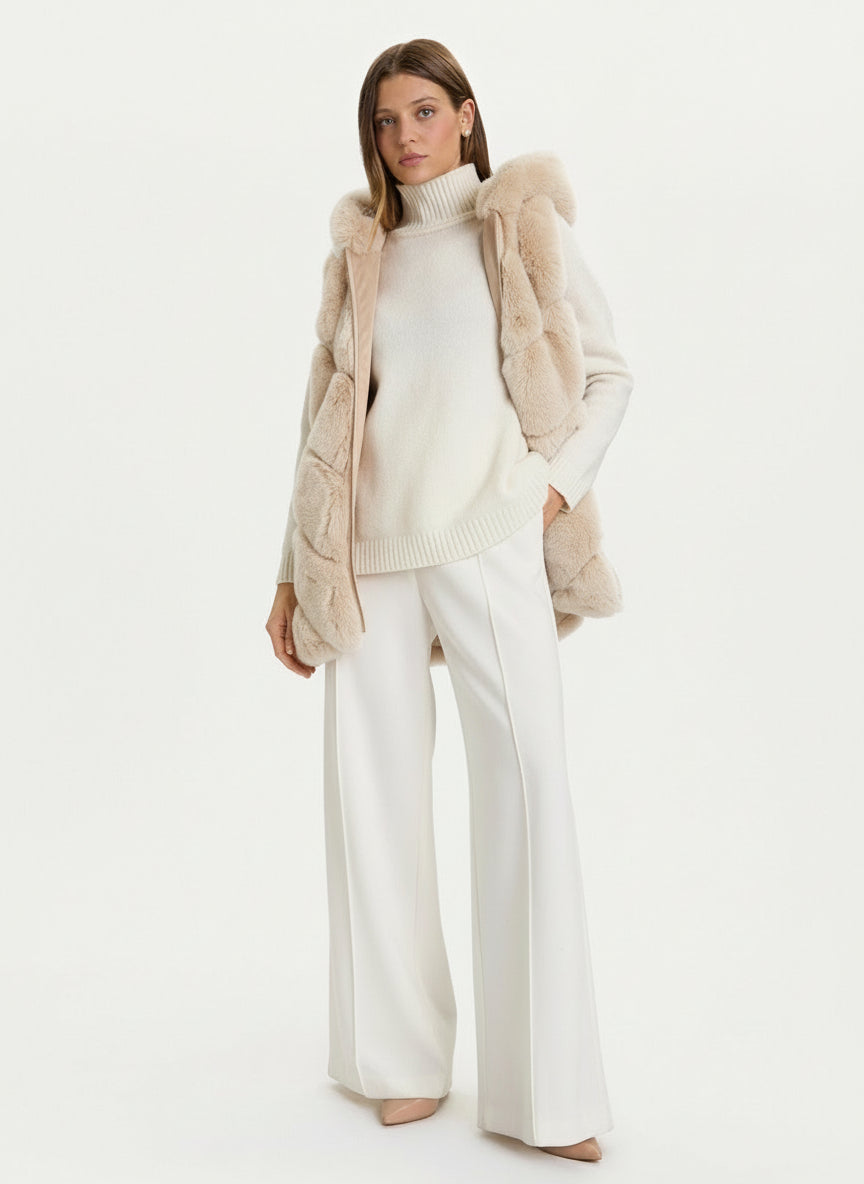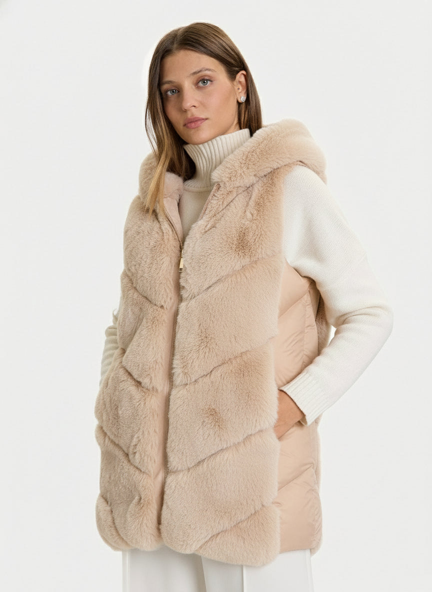 il capo perfetto per aggiungere un tocco di lusso senza sensi di colpa. Con cappuccio integrato e una texture morbidissima, è ideale per le giornate fredde quando vuoi stare al caldo mantenendo lo stile. Versatile e chic, si abbina facilmente ai tuoi outfit preferiti. Un'opzione eco-consapevole che non scende a compromessi sulla comodità e l'eleganza.