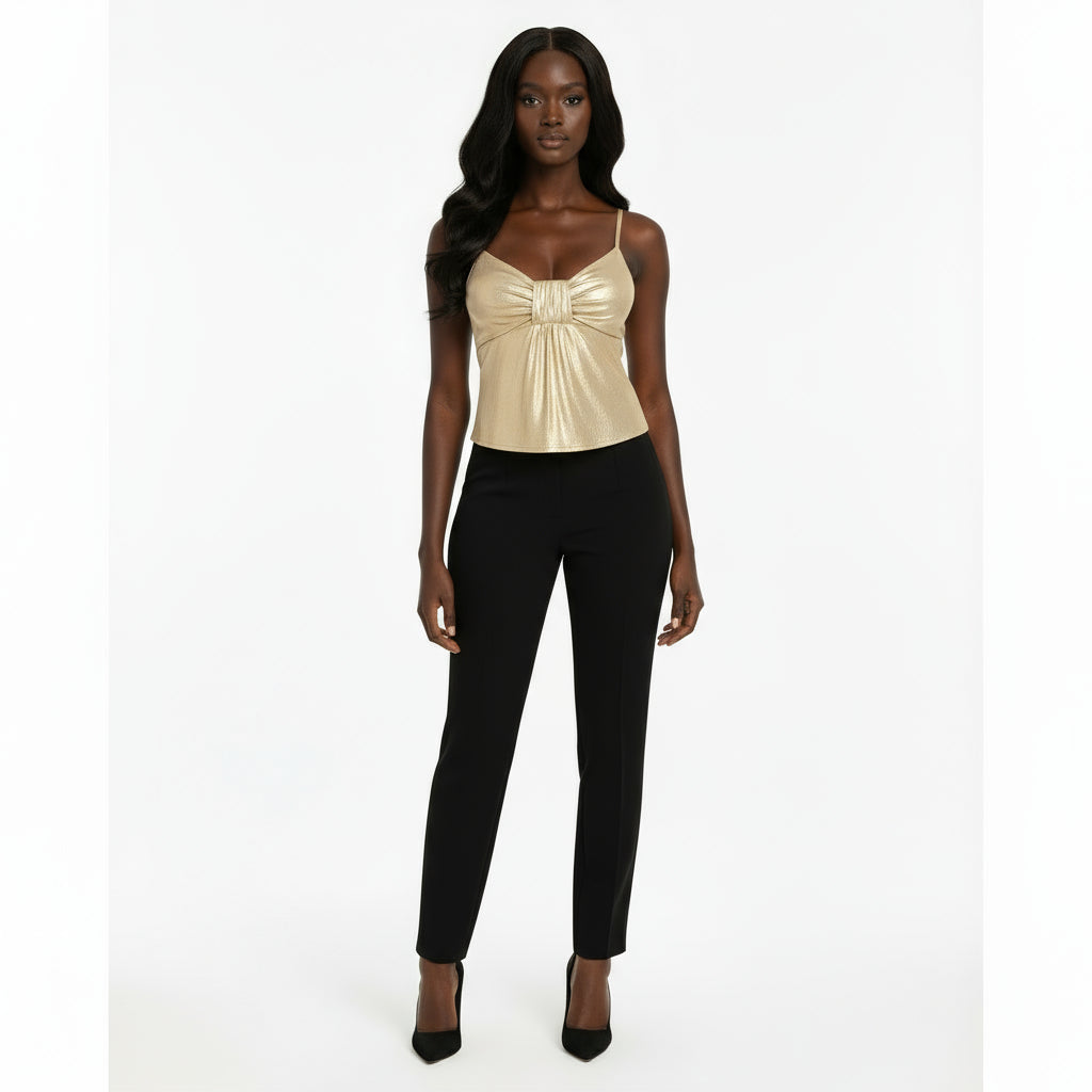 Questo top in tessuto stretch spalmato offre una vestibilità aderente e confortevole, ideale per valorizzare la silhouette. Le spalline sottili aggiungono un tocco di eleganza minimalista, rendendolo perfetto sia per look casual che più sofisticati. La superficie spalmata conferisce un effetto lucido moderno, garantendo resistenza e facilità di manutenzione. Un capo versatile e tecnico, pensato per chi cerca stile e funzionalità in un unico prodotto.