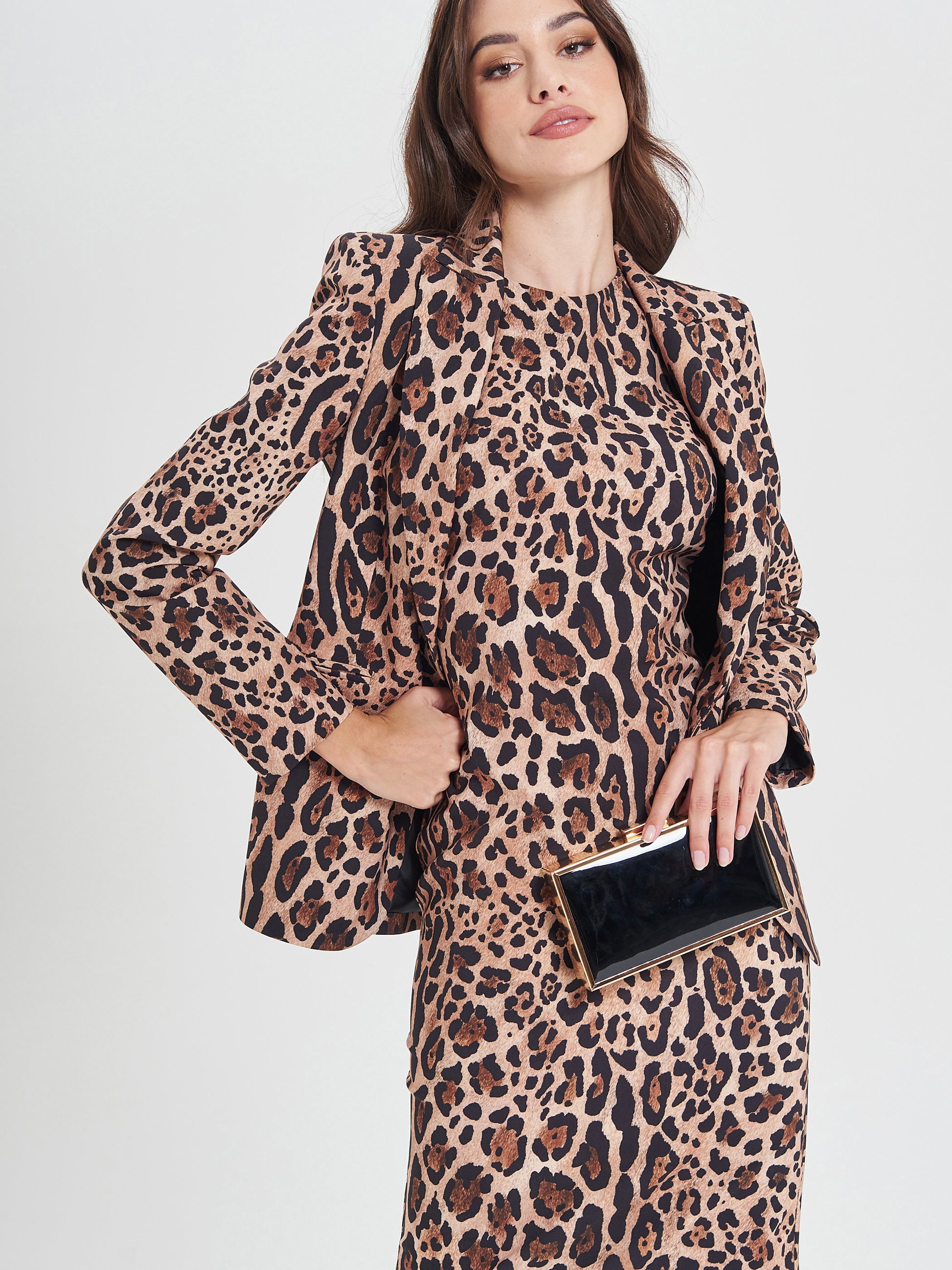 Abito modello tubino, realizzato in tessuto tecnico parzialmente riciclato, stampa animalier. Il tubino ha una silhouette classica, resa grintosa dalla stampa animalier. Chiusura posteriore tramite zip invisibile. Per un look animalier all-over indossa il tubino acquistando anche la GIACCA ANIMALIER. Questo capo fa parte del progetto Everyone Can: Rinascimento si impegna ad utilizzare nuove fibre come il poliestere riciclato in ottica di sostenibilità economica, sociale e ambientale. Il capo è interamente made in Italy. La modella è alta 1,76 m ed indossa la taglia S.